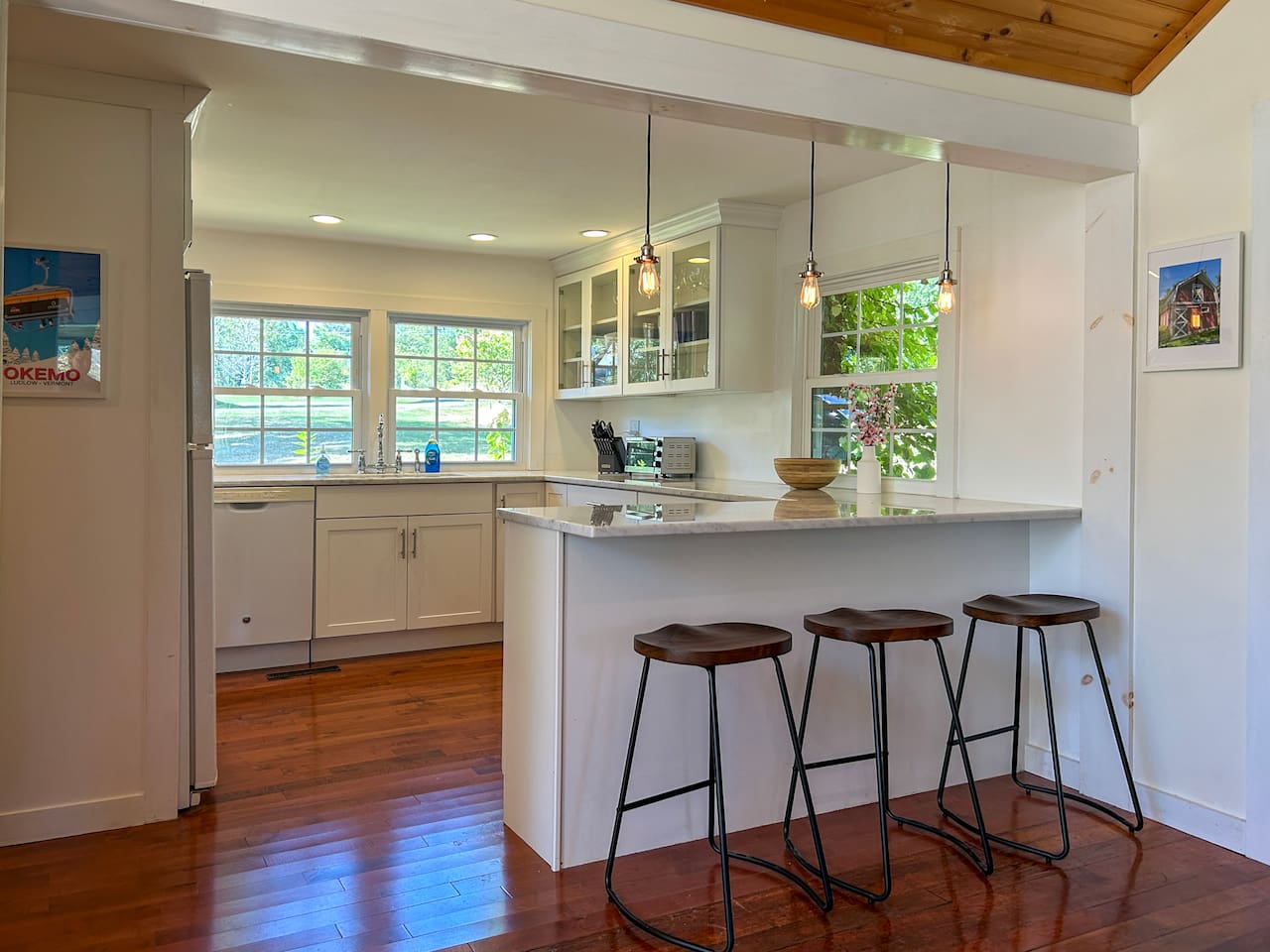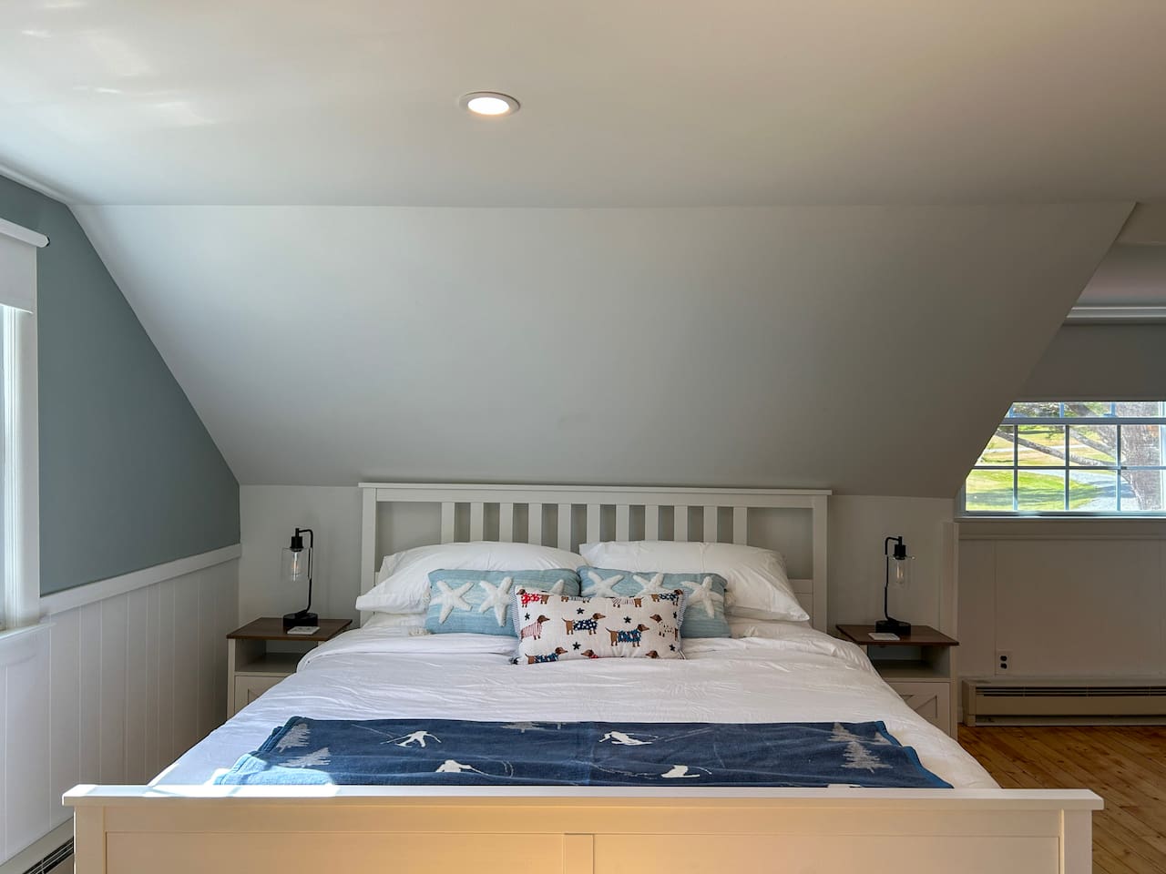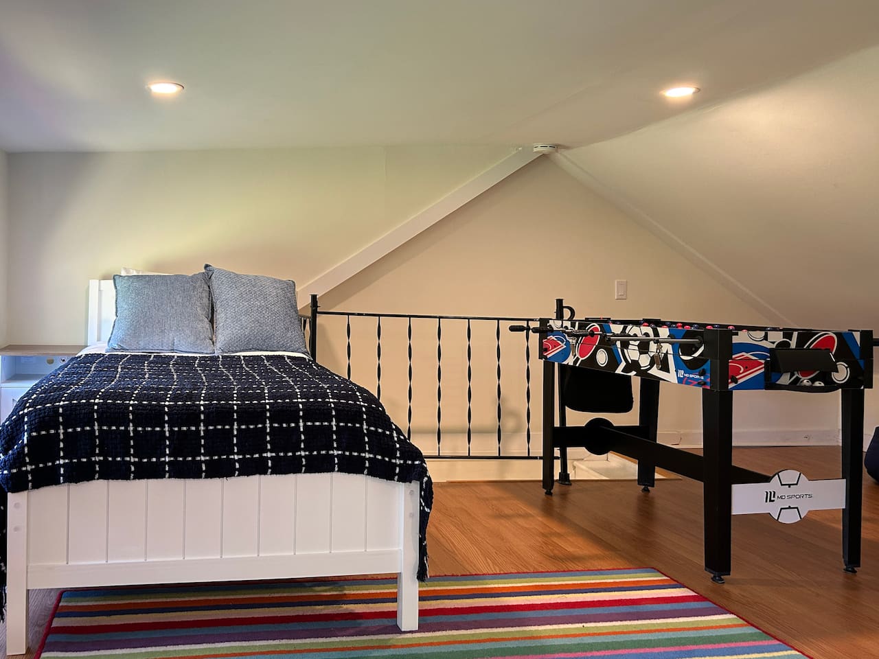 This bonus room is intended for kids and is not included in the bedroom count due to the low ceilings (5'6" at the lowest point). It is accessed via its own staircase just off of the queen bedroom.