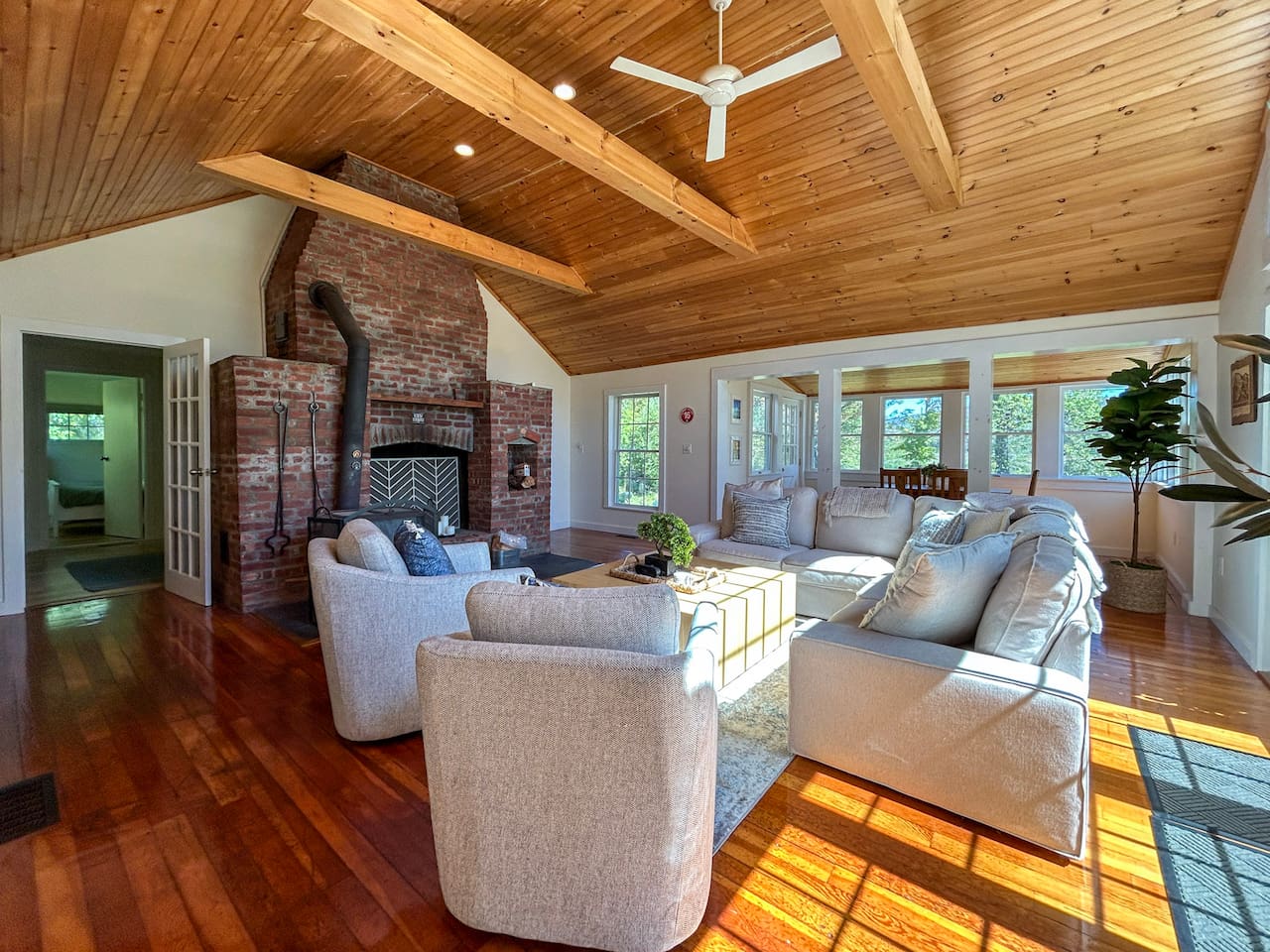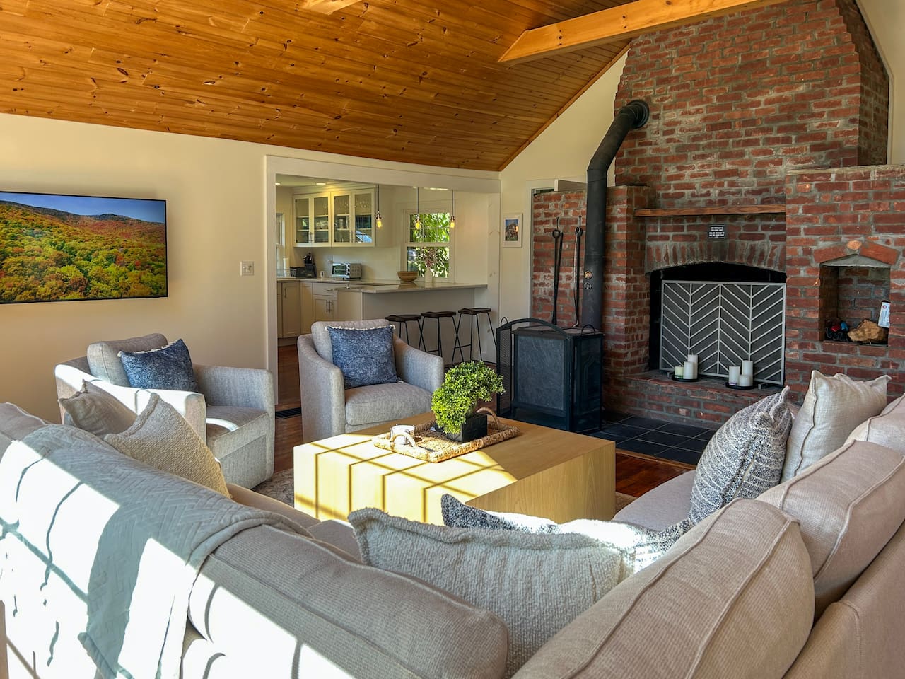 The fireplace is not available for guest use, but you are welcome to use the Vermont soapstone wood burning stove