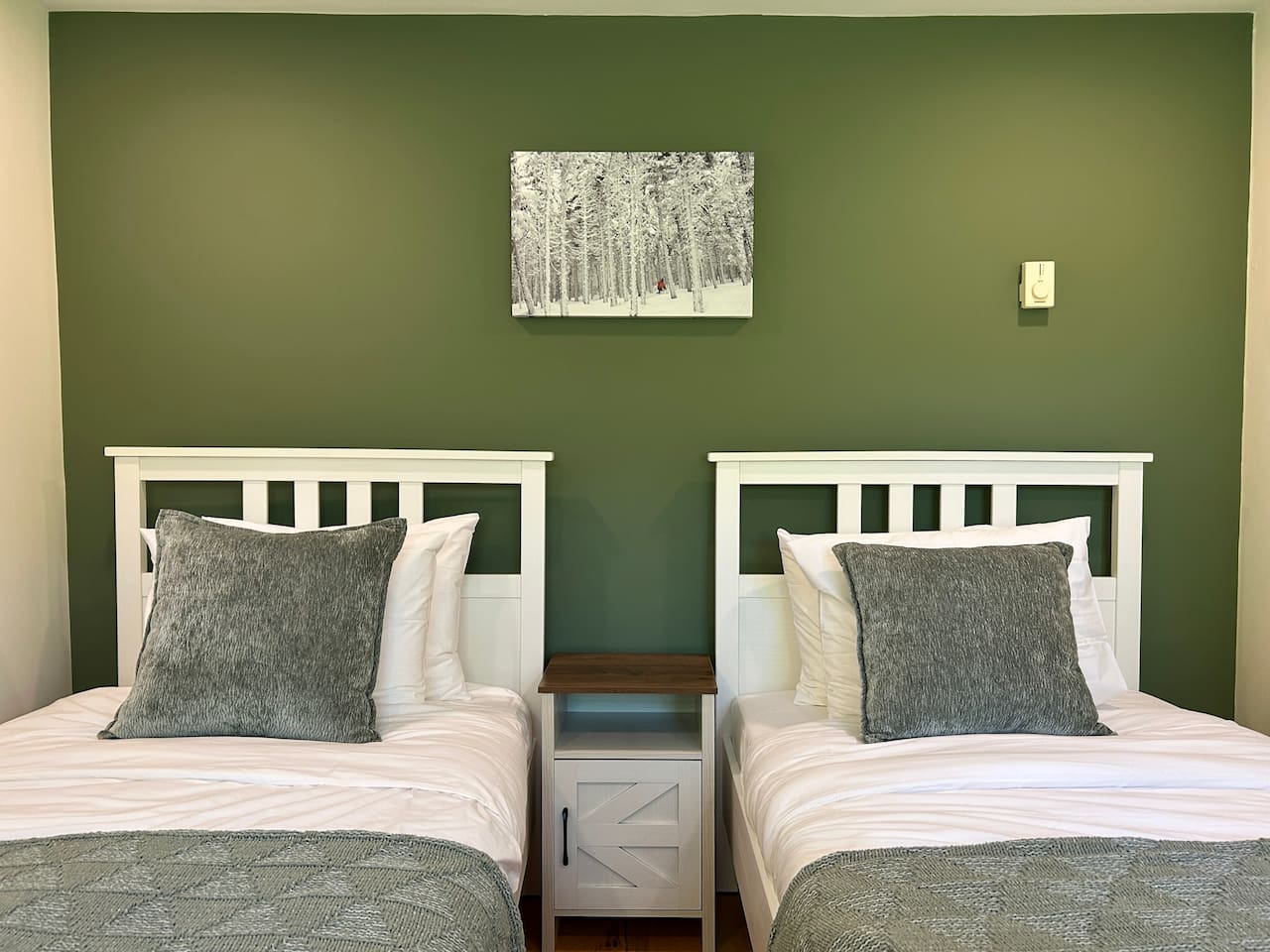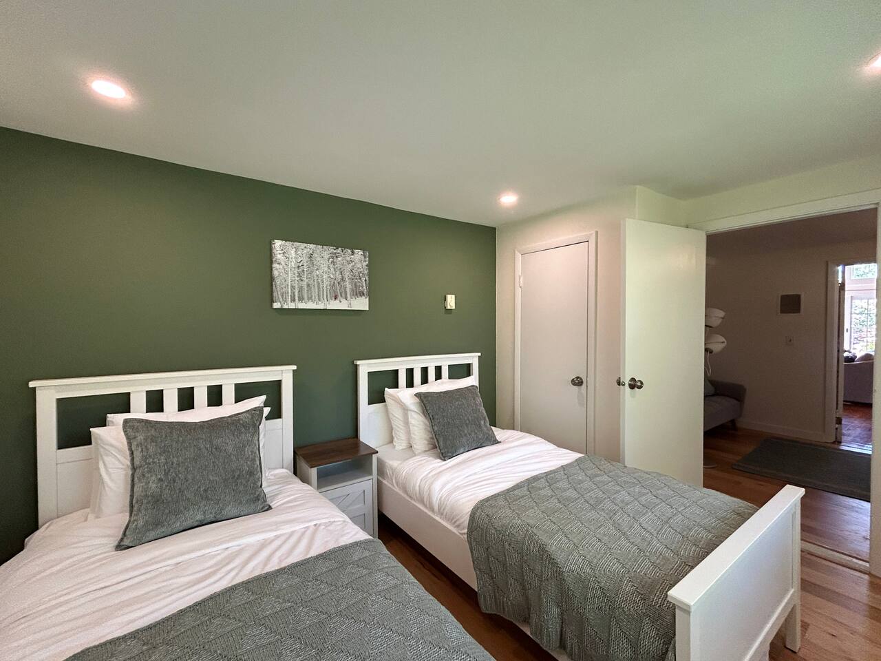 The twin bedroom is located on the ground floor and is separated from the great room by a small TV room