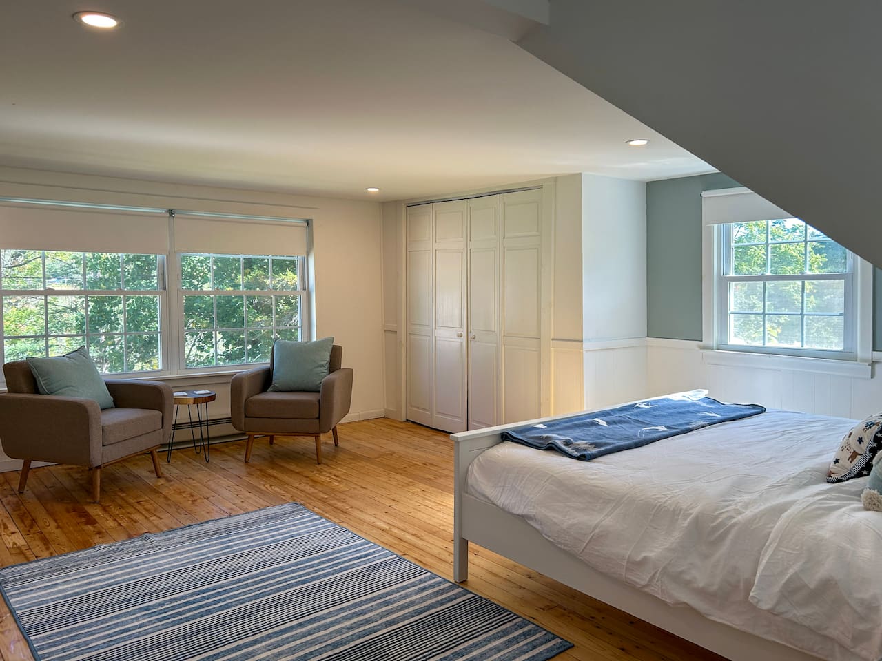 The sitting area in the primary bedroom is a nice spot for a quiet moment with tea or coffee in the morning or an afternoon break with a book